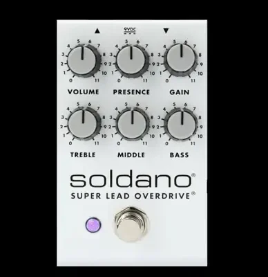 Discover unparalleled sound-shaping capabilities with the Soldano Super Lead Overdrive pedal. Featuring precise controls for volume, presence, gain, treble, middle, and bass, this pedal delivers an extensive range of overdrive tones perfect for any musical genre.