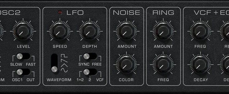 – 2 EG, 2 OSC, 1 LFO, Ring Mod, Noise, VCF