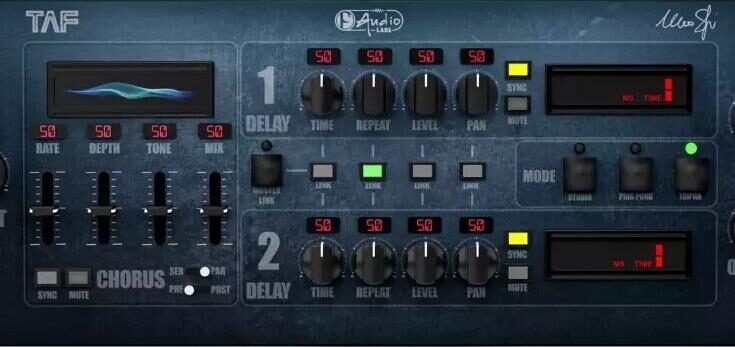 A very powerful plugin featuring a classic silky Chorus and a dual/double delay section with all the controls needed to create beautiful soundscapes. Based on Marco Sfogliís sound and production style, TAF not only includes a chorus and two delays that can be used singularly or in dual mode, but it also features a unique style mode named Tri-Pan.
