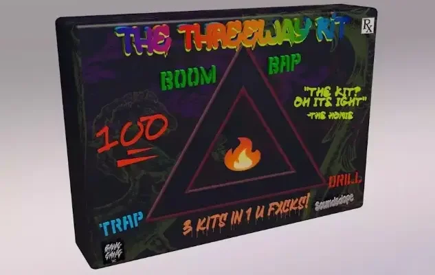 “The ThreeWay Kit” is 3 drum kits in 1, split up into trap drums, drill drums, and boombap drums.