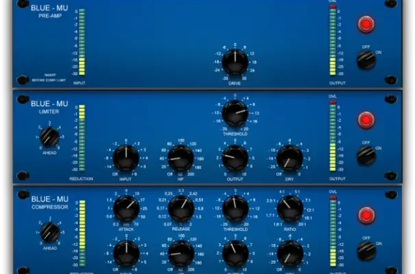 The blue mu comp/limiter is inspired by a VCA/mu design Comp/Limiter
