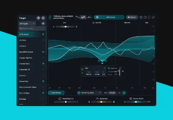 Ready to raise your tracks to pro standards? Tonal Balance Control 3 is your guide. First, pick absolutely any audio to compare your mix against. Choose from 30+ genre targets, or capture your own from anywhere – even blend them to create your perfect reference. Next, see the story of your sound with 4 easy-to-use meters. The main Tonal Balance meter shows you how frequencies in your mix are weighted – with the new Vocal Balance, Dynamics, and Stereo Width meters highlighting voice, impact, and immersion. And finally, start bridging the gap to your gold-standard with a built-in EQ for quick tonal tweaks. Plus, dive deeper with seamless Ozone, Neutron, and Nectar integration. Welcome to Tonal Balance Control 3, your compass to confidence in every mix.