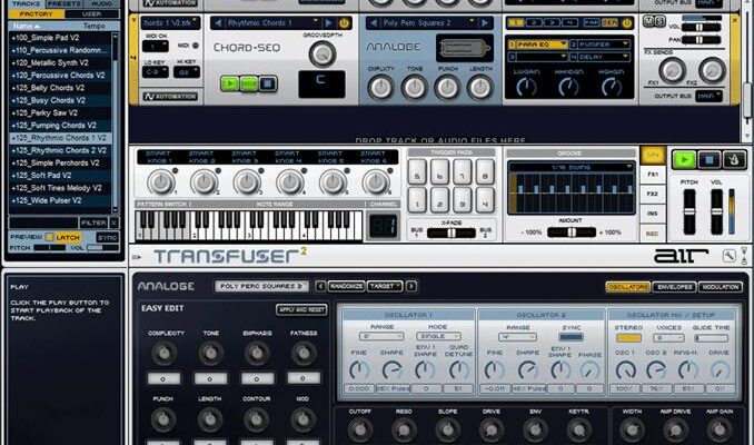 In addition to its real-time audio editing functionality, Transfuser 2 comes with an array of effects, instruments, and samples. Use the Effects module to insert up to four of 20 different effects per track, including Beatcutter, Tape Delay, Pumper, Compressor, Vinyl, Filter, Spring Reverb, Distortion, and Lo-Fi. Transfuser 2 includes a polyphonic analog synthesizer and electric piano instrument for. Transfuser 2 comes with 4.5+GB of loops and phrases that include beats, breaks, basses, acoustic and ethnic instruments, synth sounds, and more. You can also other sample libraries with Transfuser 2 by dragging and dropping your own ACID, REX, Apple Loops, AIFF, and WAV files onto its interface.