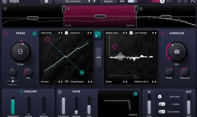 Apply Trash and Convolve to your full mix, or blend both modules in and out across three frequency bands.