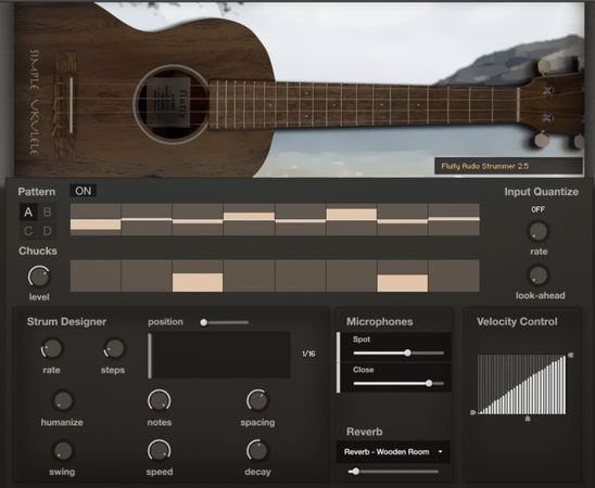 Simple Ukulele features the new Fluffy Audio Strummer 2.5, a new version of the strumming engine developed in Rinascimento and Spaghetti Western.