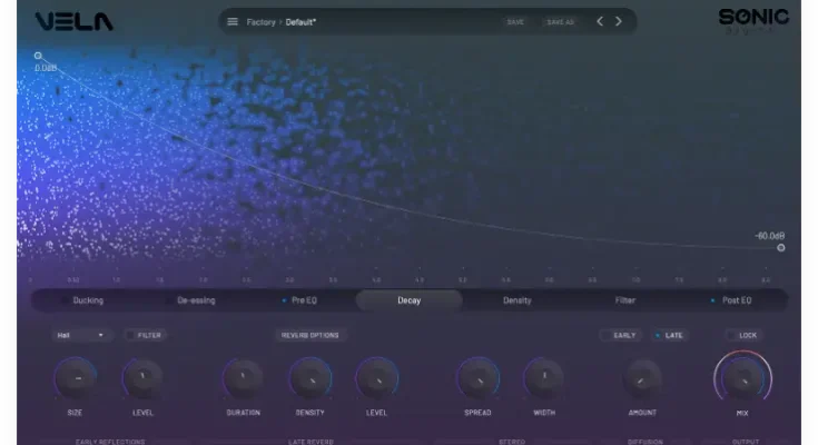 From ultra real spaces to impossibly massive soundscapes Vela is unmatched in versatility and sound. Vela gives you total control over every aspect of a reverb’s architecture.