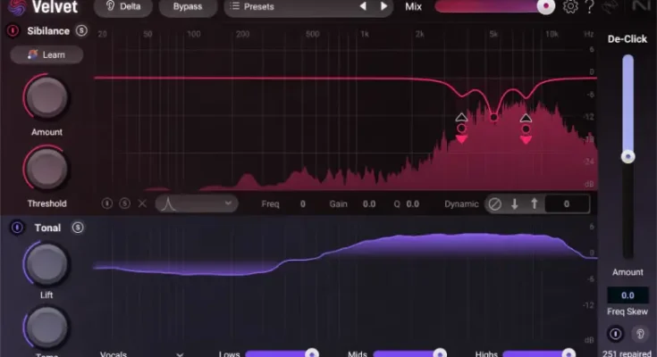 Clicks, pops, and other mouth sounds stealing the spotlight? Don’t worry, De-Click knows where they are and how to make them disappear. Just turn down the fader, watch the repair counter go up, and let your vocals take center stage as they were meant to sound.