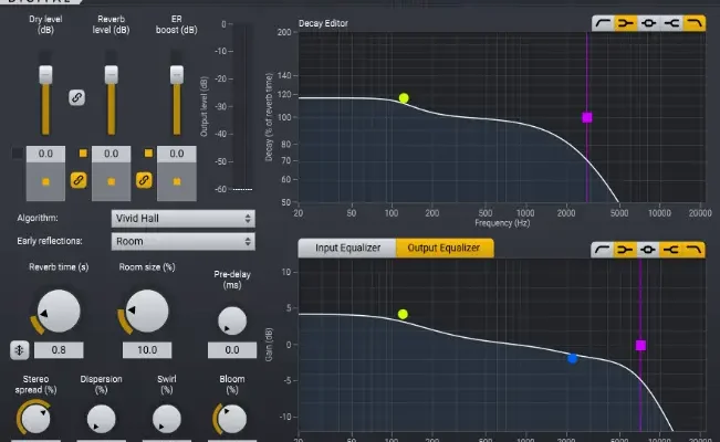 Verberate Immersive 2 was developed in close cooperation with professionals in film and TV post production. Great efforts were made to create a tool that not only delivers best-in-class audio quality, but also delivers results quickly through a well thought out workflow. Verberate Immersive 2 offers complete and independent control over the panning of the dry sound, late reverberation and early reflections. The panners work in up to three dimensions and have adjustable divergence. The pan positions and divergences are visualized and adjusted in an intuitive way, thus simplifying automation of complex movements.
