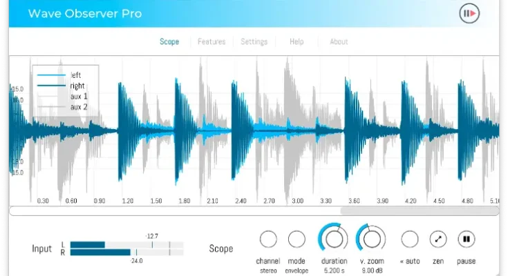Wave Observer Pro is an oscilloscope and monitoring plug-in for time-domain audio analysis. It visually supports mixing, mastering and sound design by offering a number of unique features.