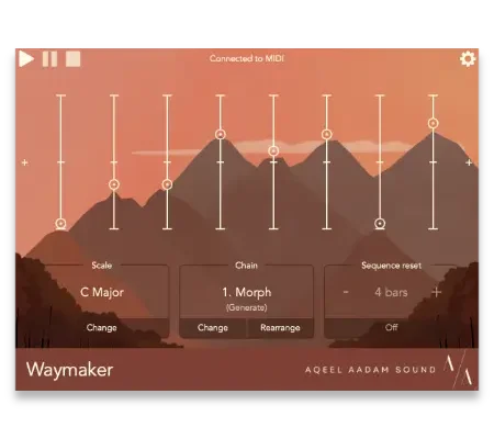 Chart your way through melodic wilderness. Create a custom chain of compounding MIDI sequencers and modules, or connect to other Aqeel Aadam Sound products for extended control. Waymaker is a collection of sequencers and modules that provides a variety of innovative ways to craft melodies and spark inspiration.