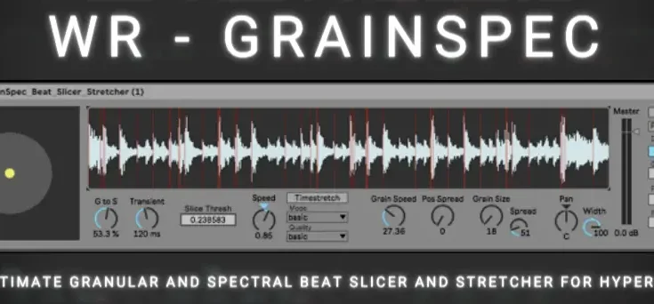 Instant glitcherizer! Take any drum loop or song snippet and stretch and squish it in any way you want, granular, spectral stretching, extreme stretch, some weird monophonic algo stretching, anything. Sample slicer with adjustable onset detection that spans the whole 128 midi notes (slice with maximum precision!), and each transient at the beginning of each slice is preserved so your beats will stay punchy as hell!. Crossfade between granular and spectral modes, try the pitch matching comb filter, adjust grain size and speed and randomizing positions (not personally my fav thing to do but you can do it). Have you heard Gantz Graf by Autechre?!? Yeah. You can make something like that in like 10 seconds with this*. Take your weird and crazy bleep bloop computer music to the next level, don’t just go glitch, go HYPERGLITCH.